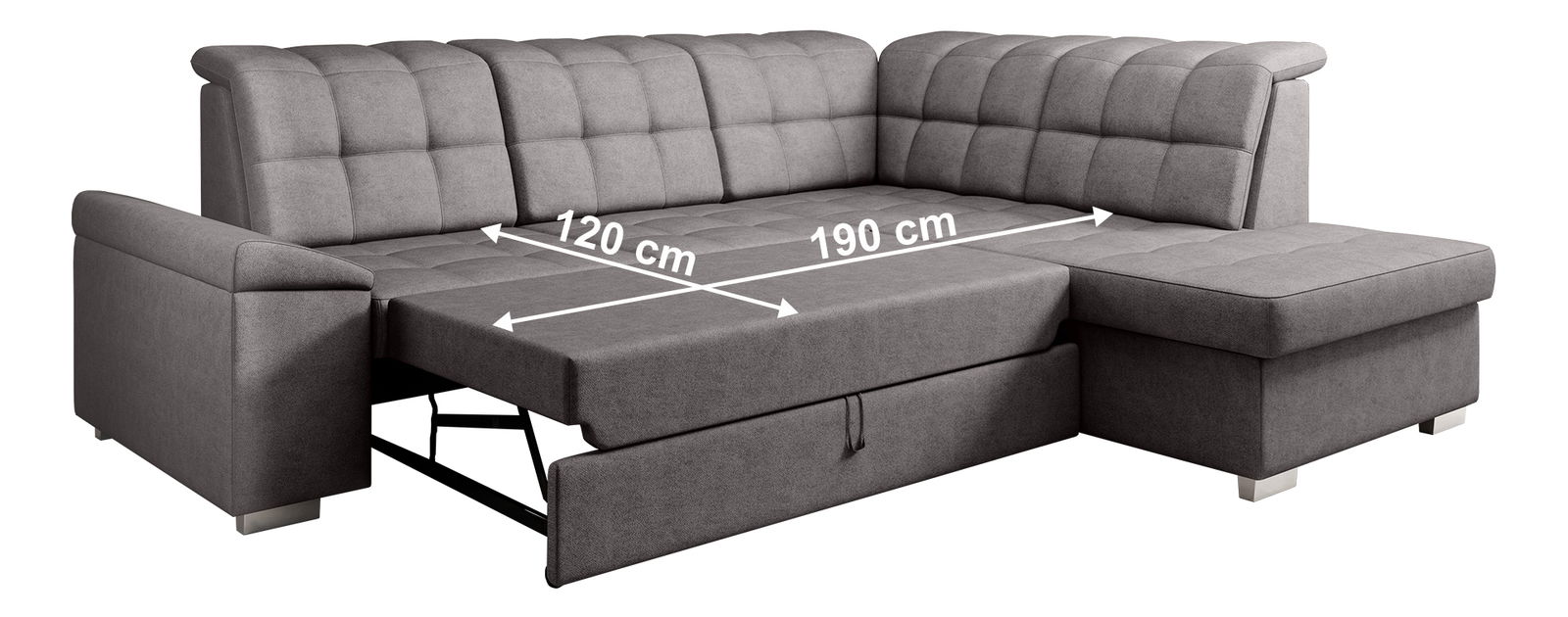 Na nogama, na razvlačenje, kutna, potpuno tapecirana, s prostorom za odlaganje, podesivi nasloni za glavu, desno usmjerenje
