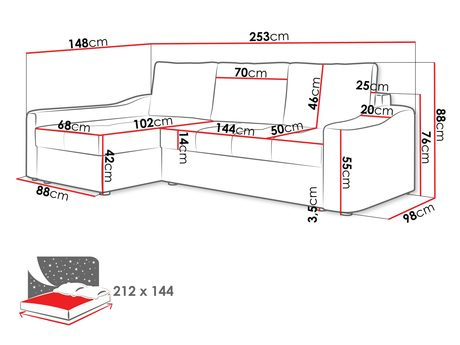 Kutna garnitura na razvlačenje idealan je izbor za one koji traže udobnost i stil. Minimalistički dizajn ove garniture osvojio je širok krug obožavatelja. Jednostavan oblik savršeno se uklapa u svaki dnevni boravak. Poseban detalj je dekorativno prošivanje na sjedištu koje naglašava moderan karakter ovog modela. Kutna garnitura u obliku slova L s funkcijom spavanja idealna je za odmor, a nakon rasklapanja nudi i prostranu površinu za svakodnevno spavanje. Prednost koja dodatno povećava popularnost modela Oziker su dva spremnika za posteljinu. Svaki od njih nudi dovoljno prostora za pohranu. Dimenzije: širina: 253 cm, dubina: 148 cm, visina: 88 cm, površina za spavanje: 212 x 144 cm. Spremnici (dva komada): 136 x 65 x 24 cm, 141 x 65 x 24 cm. Kutna strana: lijeva ili desna. Izvedba: okvir od borovine + ploča, sjedalo i naslon: pjena T28/44 debljine 9 cm + valovita opruga, kutna garnitura na razvlačenje, automatski sklopivi mehanizam, funkcija spavanja, dva spremnika za posteljinu, PVC noge u crnoj boji, naslon u obliku pomičnih jastuka, jastuci na patent, jastuci uključeni, slobodnostojeća kutna garnitura (stražnja strana presvučena tkaninom). Jamstvo: 24 mjeseca.