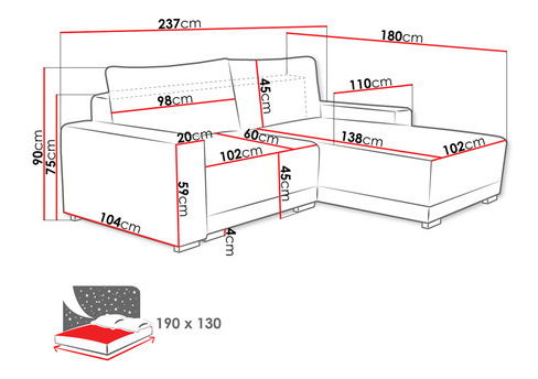 Kutna garnitura idealan je izbor za one koji traže udobnost i stil. Kutna garnitura Puderenko s funkcijom spavanja savršena je za ljubitelje udobnih interijera! Udobnost, stil i praktičnost u jednom komadu namještaja – sve to! Idealna za opuštanje nakon napornog dana. Oduševit će vas svojom mekoćom! Kutna garnitura od Manchestera presvučena je na dodir ugodnom tkaninom. Tekstura Manchestera unosi jedinstvenu toplinu i ugodnu atmosferu. Ovaj model zasigurno će postati praktičan i stilski element vašeg interijera. Moderna kutna garnitura opremljena je funkcijom razvlačenja. To je savršeno rješenje kada trebate dodatni prostor za spavanje za goste ili za kratki dnevni odmor. Dovoljan je trenutak da se kutna garnitura pretvori u udoban krevet koji osigurava dobar san. Puderenko ima i spremnik za posteljinu. Zahvaljujući njemu vaša će soba uvijek biti uredna. Model je slobodnostojeći, što vam daje veću fleksibilnost pri uređenju prostora i omogućuje da ga postavite kao središnji element prostorije. Dimenzije: duljina: 237 cm, širina: 180 cm, visina: 90 cm, ležaj: 190 x 130 cm, spremnik: duljina: 97 cm, širina: 72 cm, visina: 22 cm. Strana kuta: univerzalna (kupac odabire prilikom montaže). Izvedba: konstrukcija – borovina debljine 6 cm + iverica debljine 15 mm, sjedište: pjena T30/38 + val opruga tip A, naslon: pjena T30/38. Kutna garnitura je na razvlačenje, s automatskim mehanizmom, funkcijom spavanja, spremnikom za posteljinu, crne drvene noge, naslon u obliku pomičnih jastuka, jastuci s patentnim zatvaračem uključeni u cijenu, slobodnostojeća kutna garnitura (stražnja strana presvučena tkaninom). Jamstvo: 24 mjeseca.