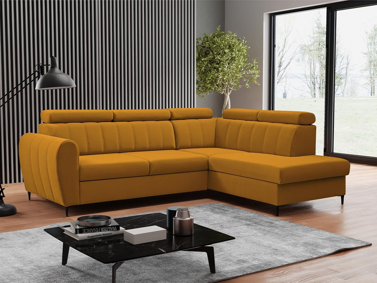 Kutna garnitura Potazuro L (boja senfa) (s prostorom za odlaganje) (D)