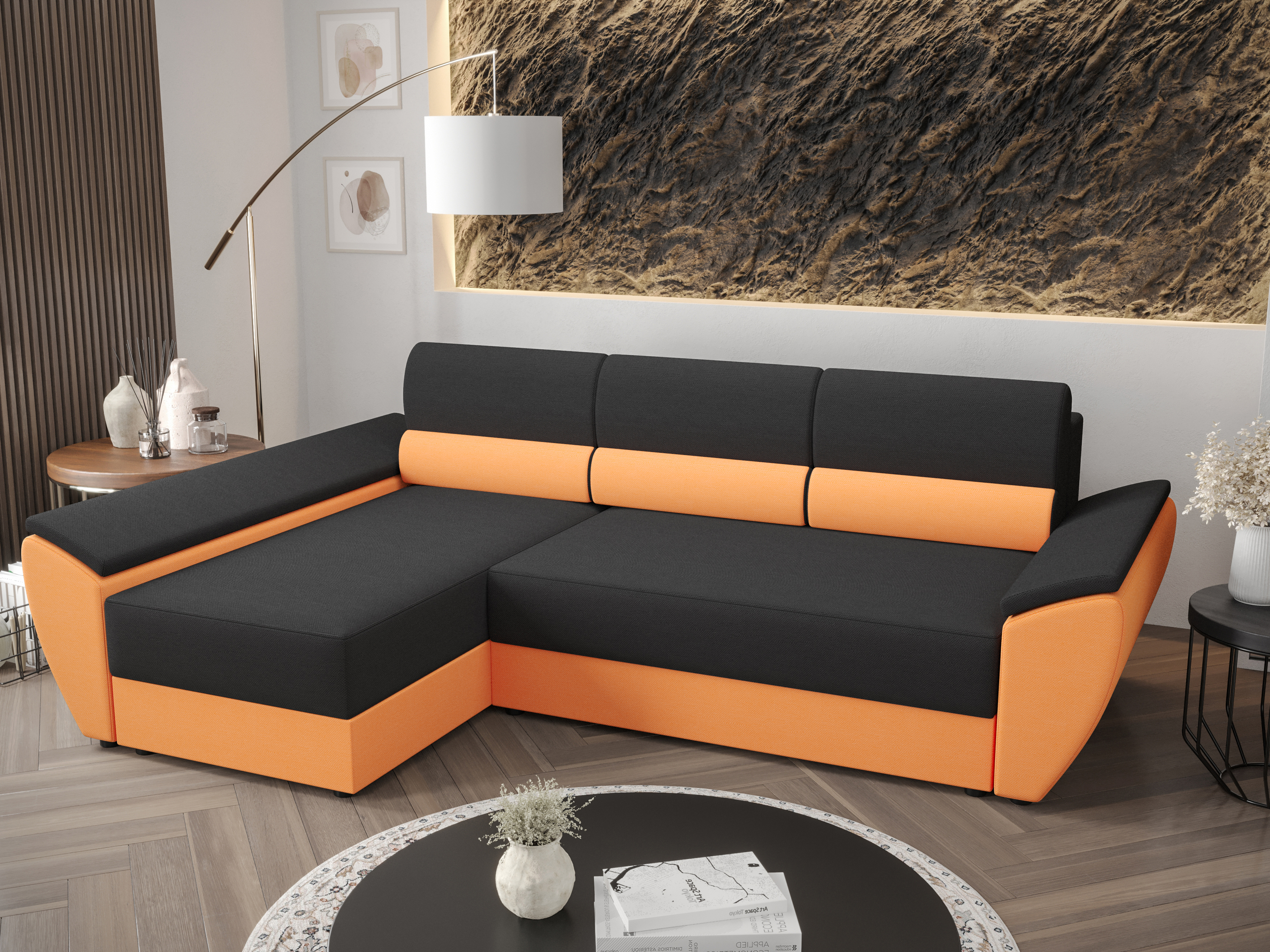 Kutna garnitura Radiant L3 (crna + narančasta) (L)