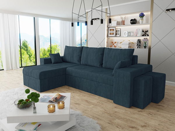 Kutna garnitura Terazuno S (tamnoplava) (s prostorom za odlaganje)
