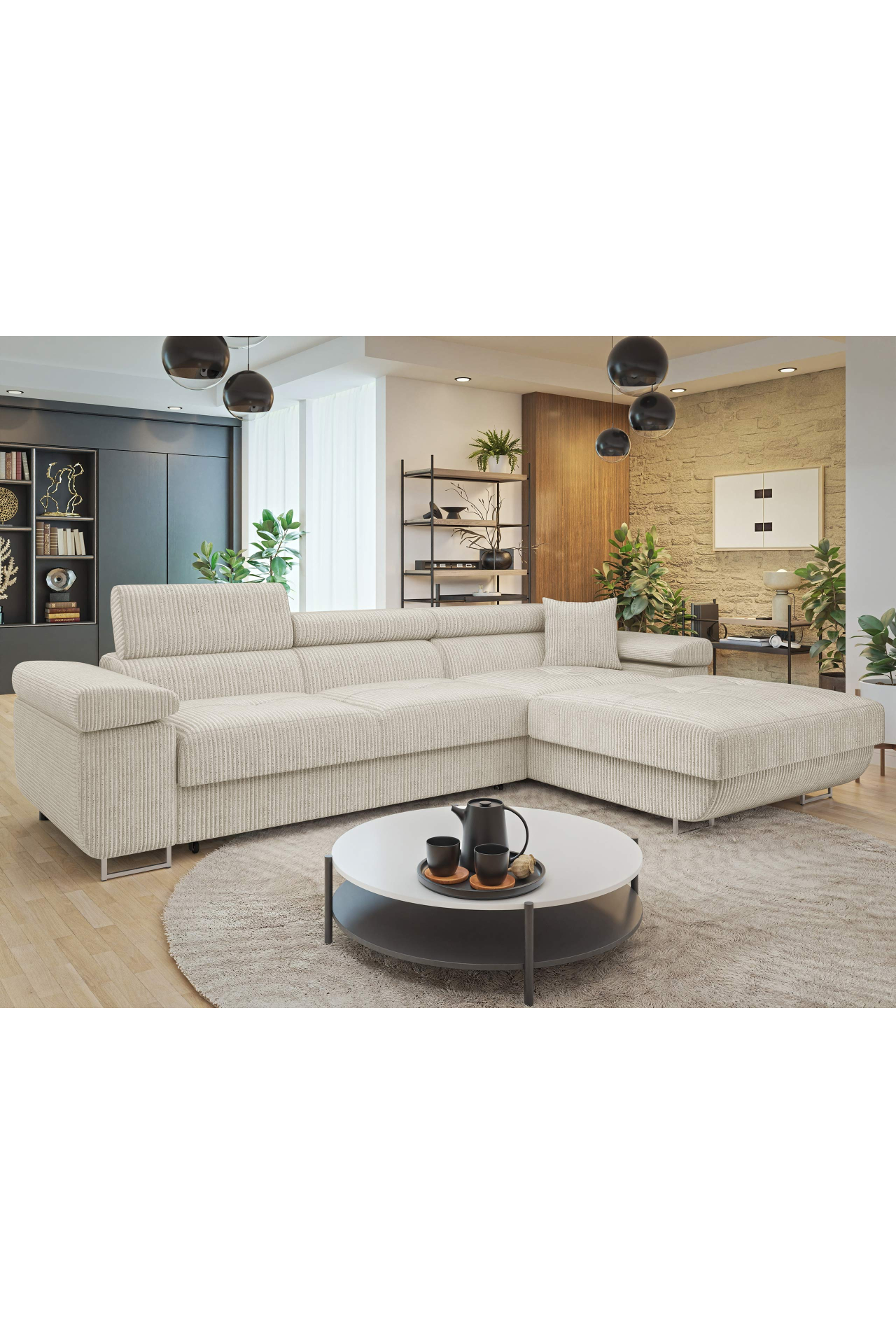 Kutna garnitura Terazuro Mini S (krem) (s prostorom za odlaganje) (D)