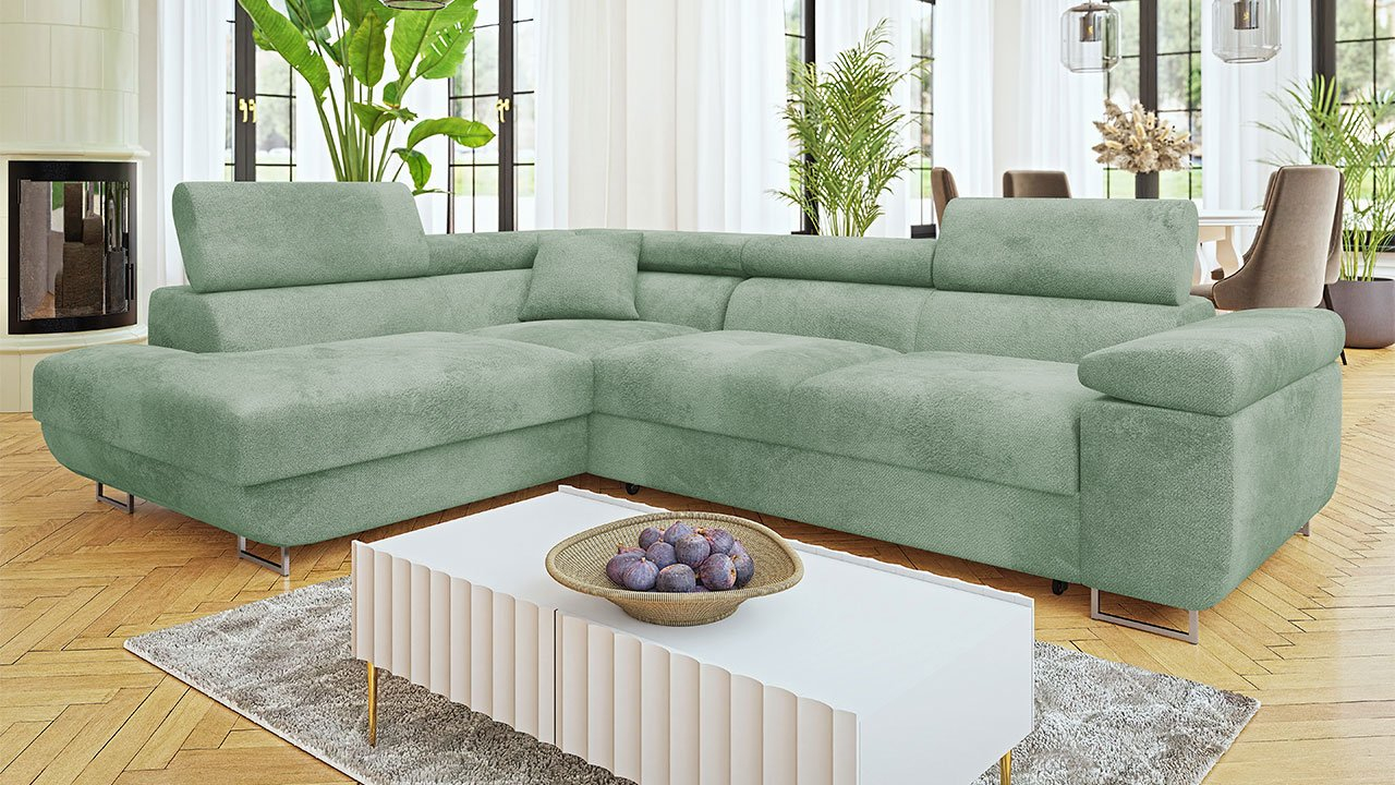 Kutna garnitura Terazuro Premium (zelena) (s prostorom za odlaganje) (L)