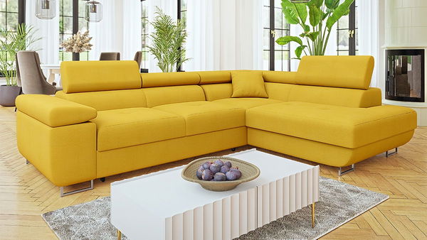 Kutna garnitura Terazuro Premium (žuta) (s prostorom za odlaganje) (D)