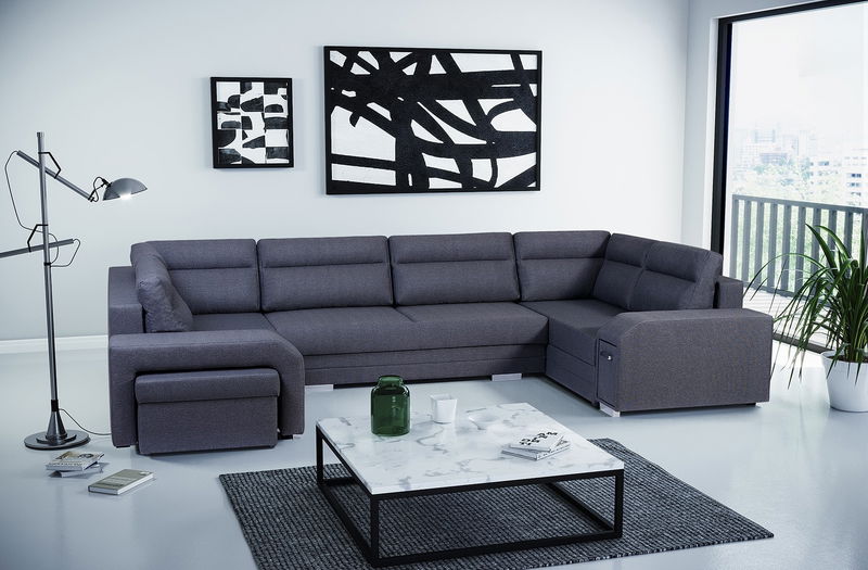 Kutna garnitura Albertus u obliku slova U može se razvući i ima dva prostora za pohranu.