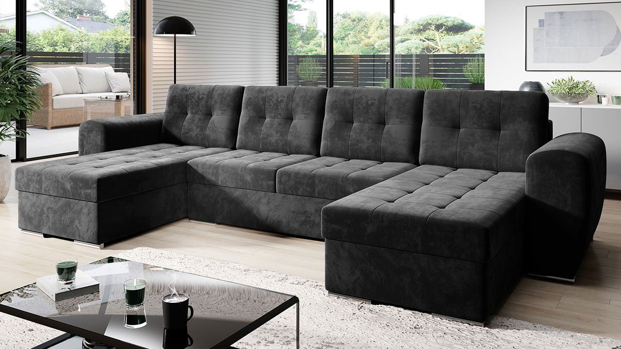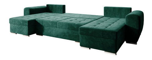 PrikazKutna garnitura idealan je izbor za one koji traže udobnost i stil. Velika kutna garnitura Darilko U pravo je utočište za obiteljski odmor. Svako prošiveno sjedište pruža udobne uvjete za gledanje filmova, čitanje knjiga i duga druženja uz kavu. Prošivena sjedišta i nasloni također su izvrsno mjesto za susrete s prijateljima i obitelji. Dodavanjem stolića u kut stvorit ćete savršen prostor za svakodnevni odmor. Garnitura se također može razvući. U samo nekoliko trenutaka pretvara se u garnituru za svakodnevno spavanje. Nakon izvlačenja srednjeg dijela otkriva se i spremnik za posteljinu. Prostrana kutija pomaže organizirati jastuke i poplune. Dimenzije: duljina: 326 cm, širina: 157 cm, visina: 97 cm, površina za spavanje: 271 x 130 cm. Dimenzije spremnika: duljina: 132 cm, širina: 56 cm, visina: 25 cm. Strana kuta: univerzalna (odabir pri montaži). Izvedba: konstrukcija od drveta i iverice, sjedište: pjena T25 + opruge, naslon: pjena T25 + profilirana pjena, kutna garnitura na razvlačenje, automatski mehanizam tipa DL, funkcija spavanja, spremnik, oblik U, prednje noge – metalne, stražnje – plastične, naslon u obliku pomičnih jastuka na zatvarač, slobodnostojeća kutna garnitura (stražnja strana tapecirana tkaninom). Jamstvo: 24 mjeseca.