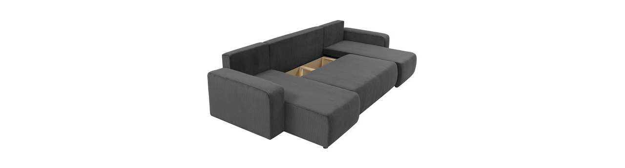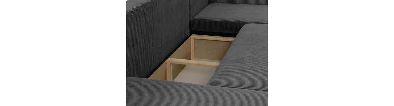 Kutna garnitura U Euston U S (siva + crna) (s prostorom za odlaganje)