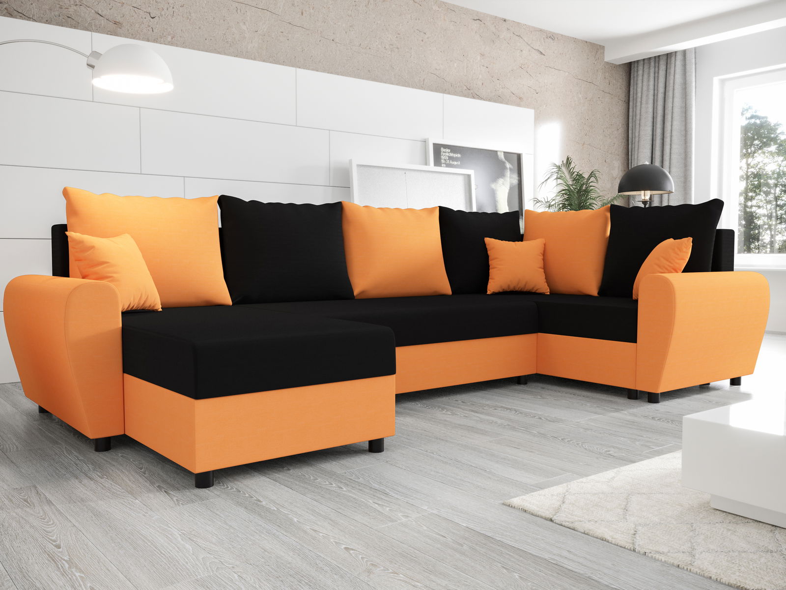 Kutna garnitura u obliku slova U Fleur Long (narančasta + crna) (D)