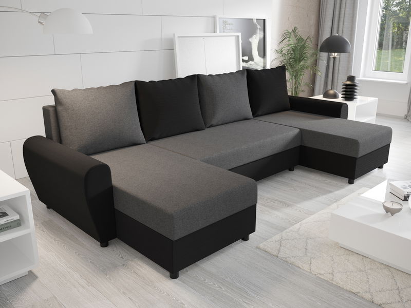 Kutna garnitura u obliku slova U Fleur U (crna + siva)
