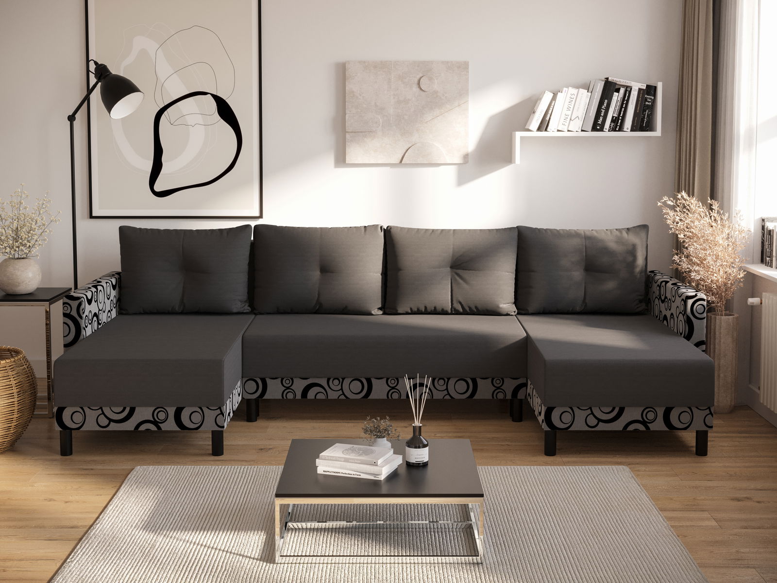 Kutna garnitura u obliku slova U Glimmer U (siva + crna)