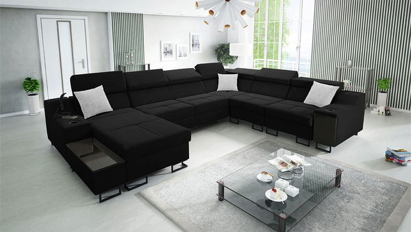 Kutna garnitura u obliku slova U pasaruna VIII (crna + siva) (s prostorom za odlaganje) (L)
