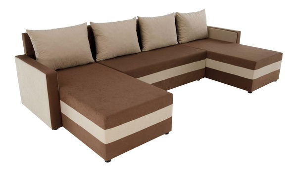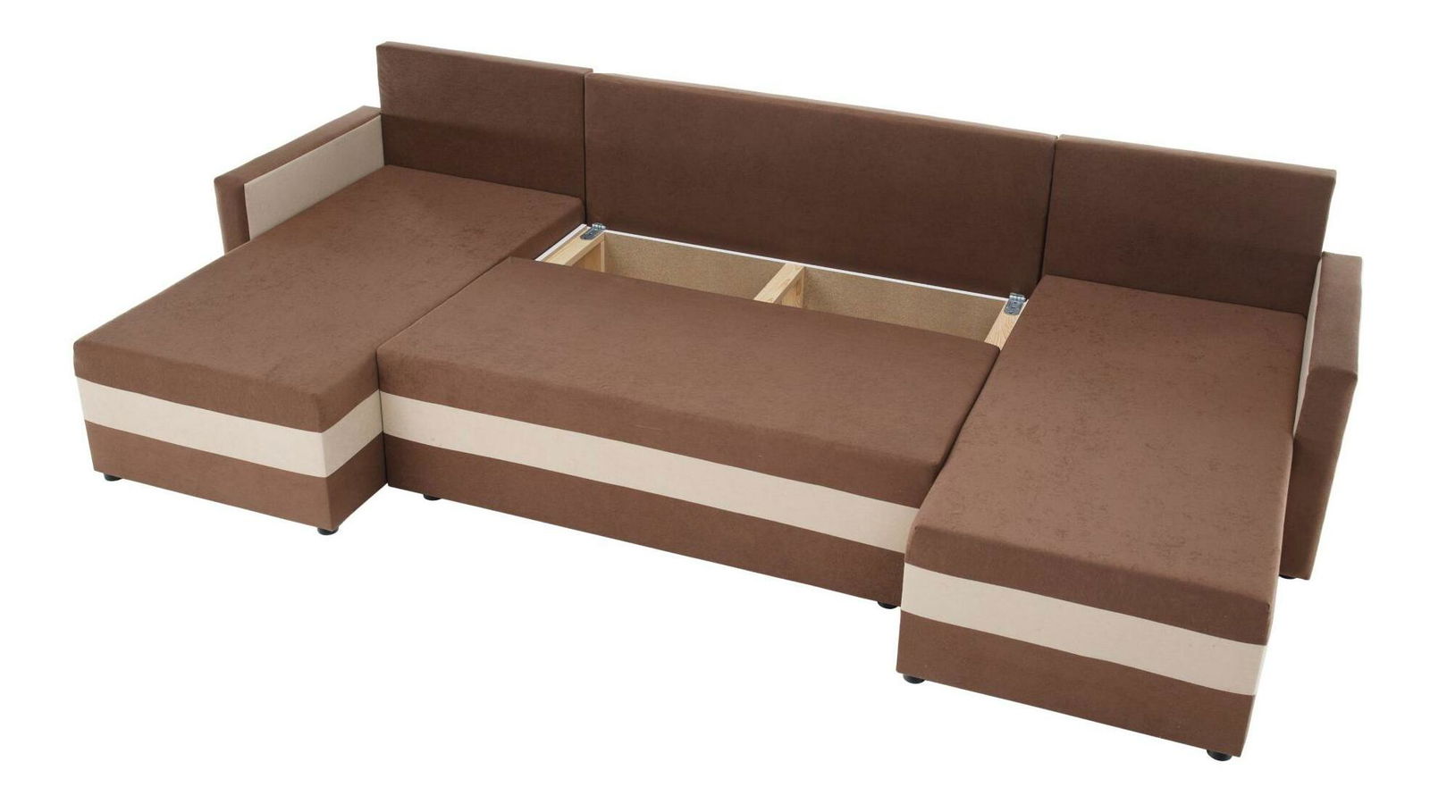 Kutna garnitura u obliku slova U Paulati (smeđa + bež) (na razvlačenje, s prostorom za odlaganje)