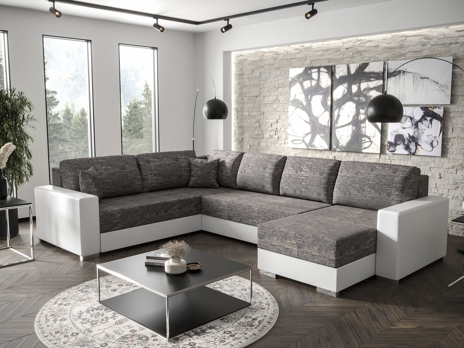 Kutna garnitura u obliku slova U Pearle 3 (bijela + siva) (L)