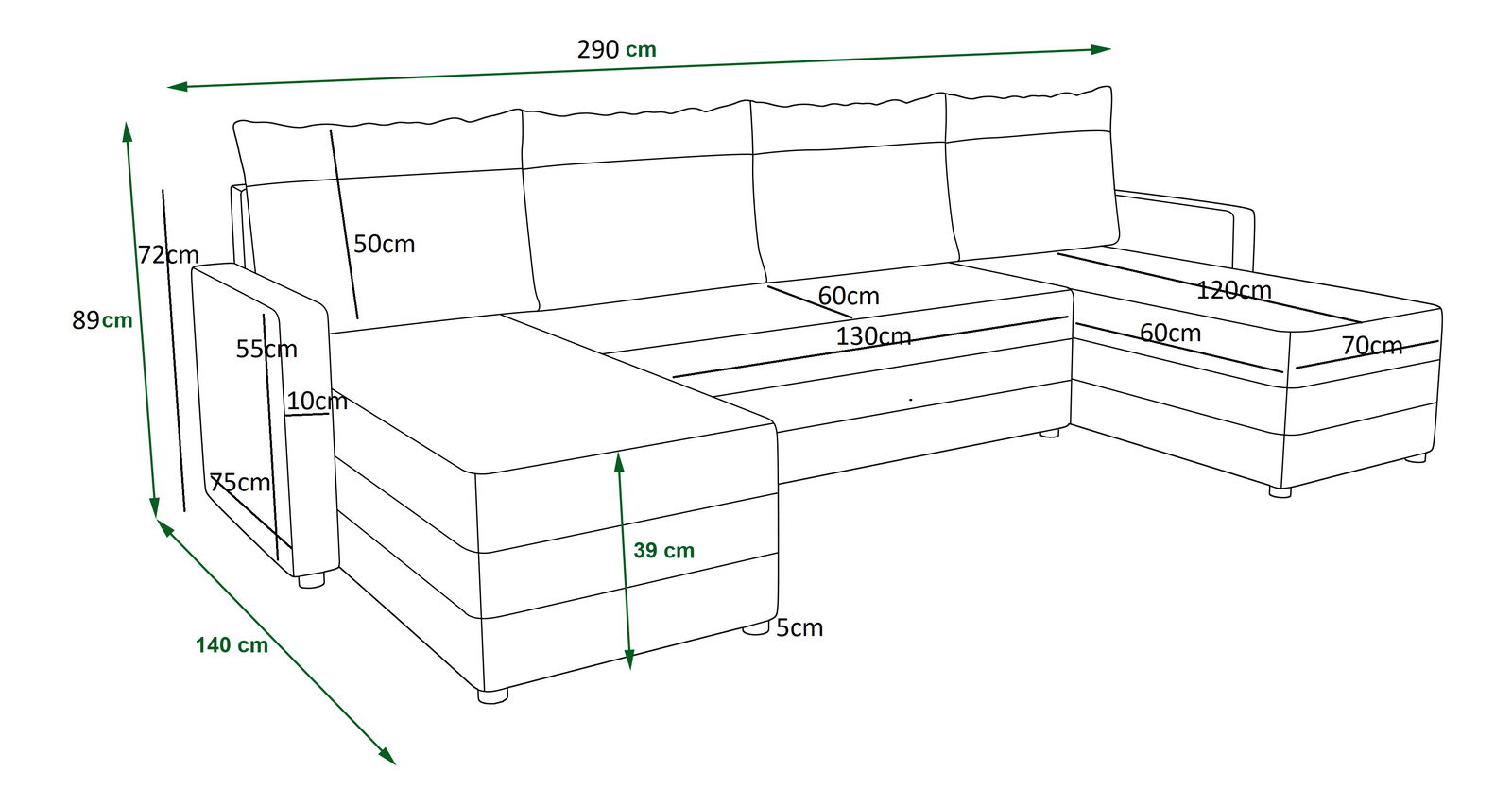 Kutna garnitura u obliku slova U Pure U Bis (crna + siva)