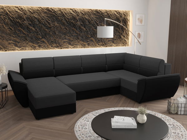 Kutna garnitura u obliku slova U Radiant Long (crna + tamnosiva) (D)