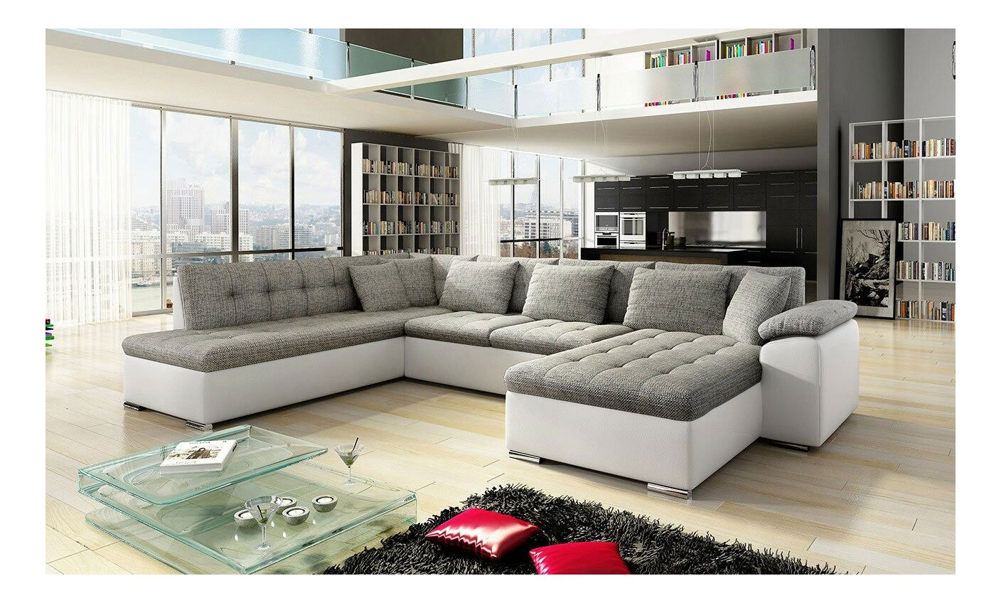 Kutna garnitura u obliku slova U Talina s funkcijom spavanja (D) (ekokoža Soft 017 + Lawa 05)