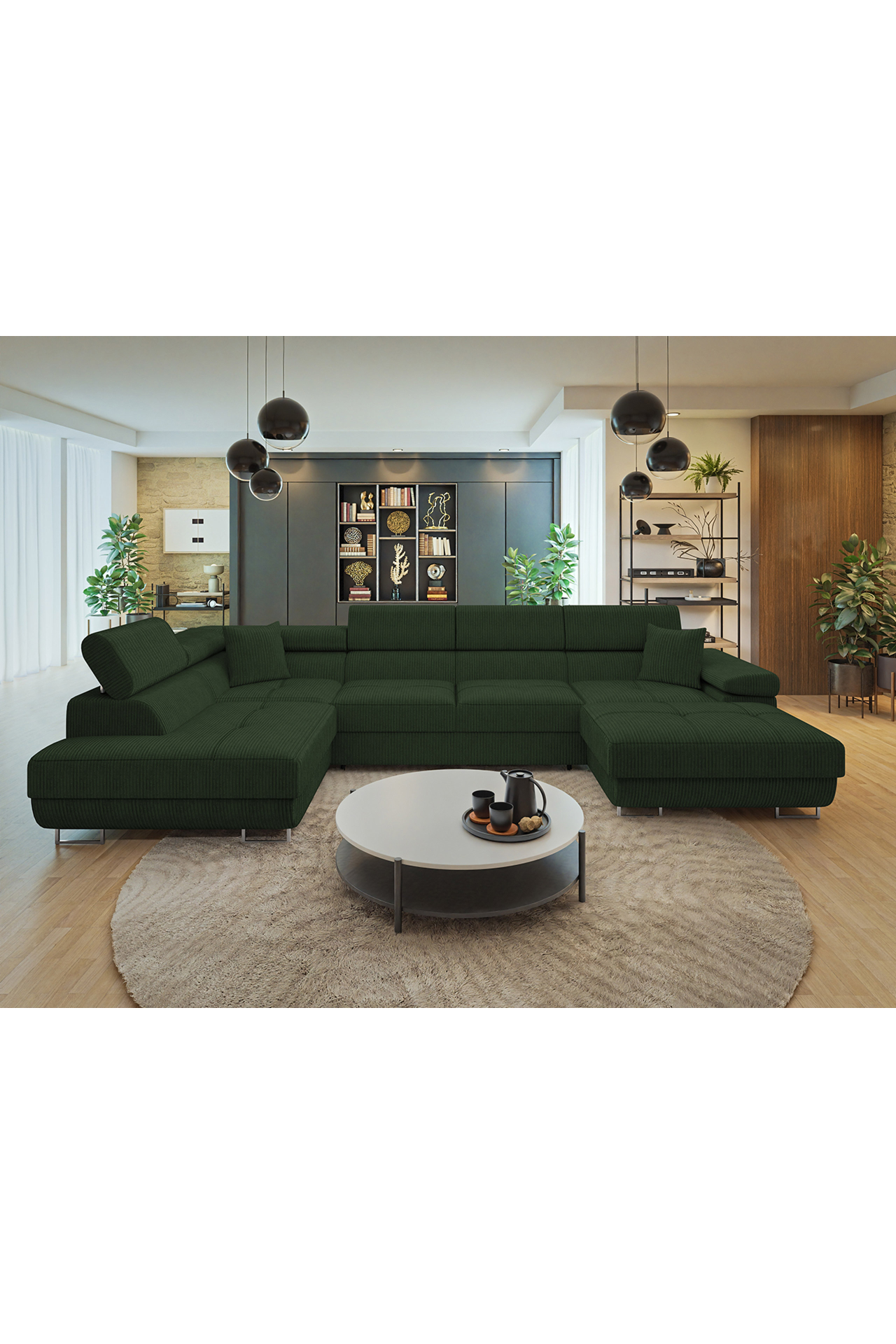 Kutna garnitura u obliku slova U Terazuro Bis S (tamnozelena) (s prostorom za odlaganje) (L)
