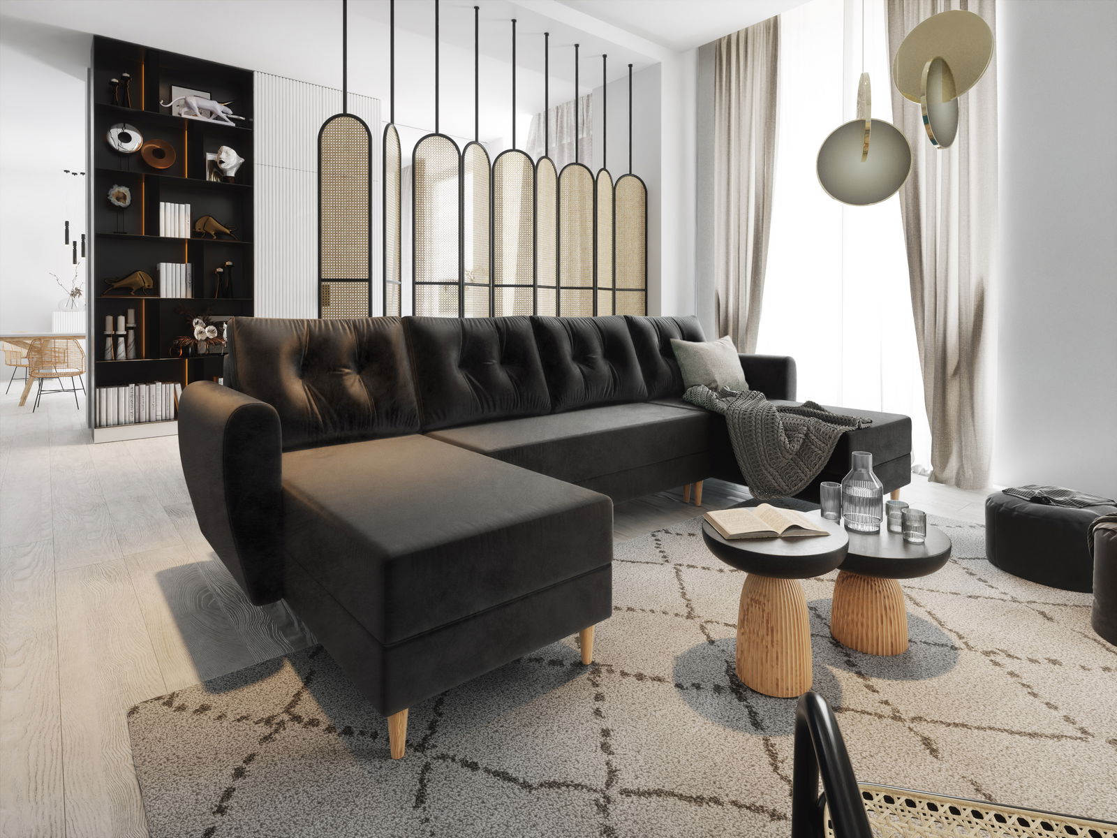Kutna garnitura u obliku U Paladio (crna) (L)