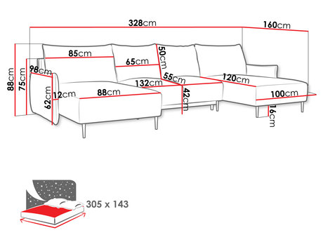 duljina: 127 cm, širina: 62 cm, visina: 22 cm