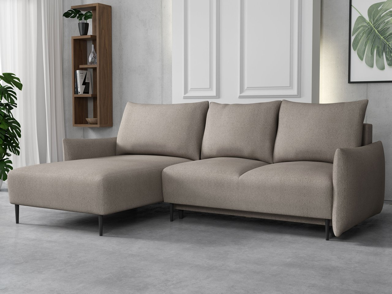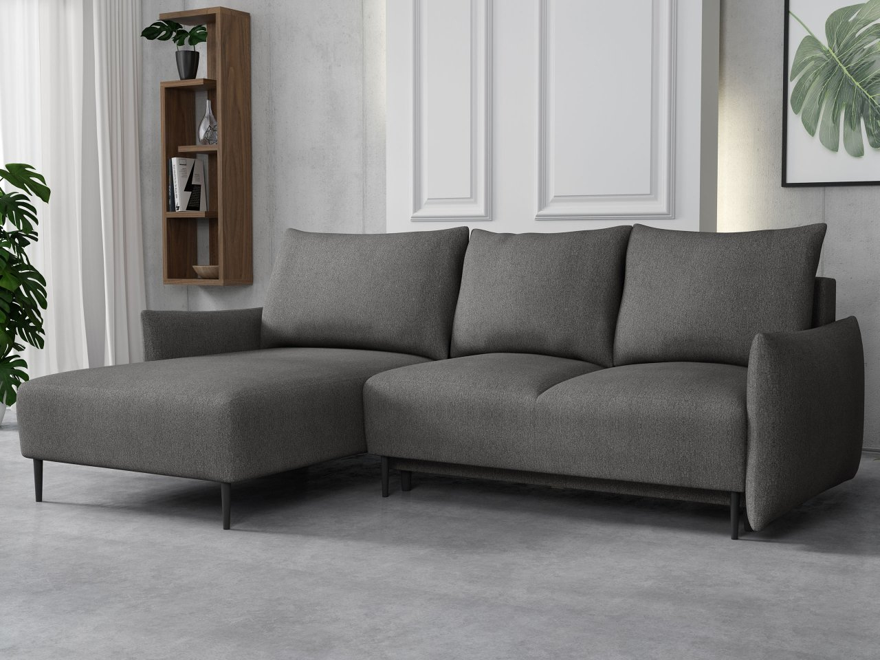 Kutna garnitura Welenora L (siva) (s prostorom za odlaganje)