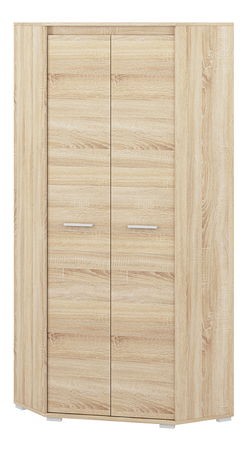 Kutni garderobni ormar. Na desnoj strani je šipka za vješanje odjeće, a na lijevoj strani su police.