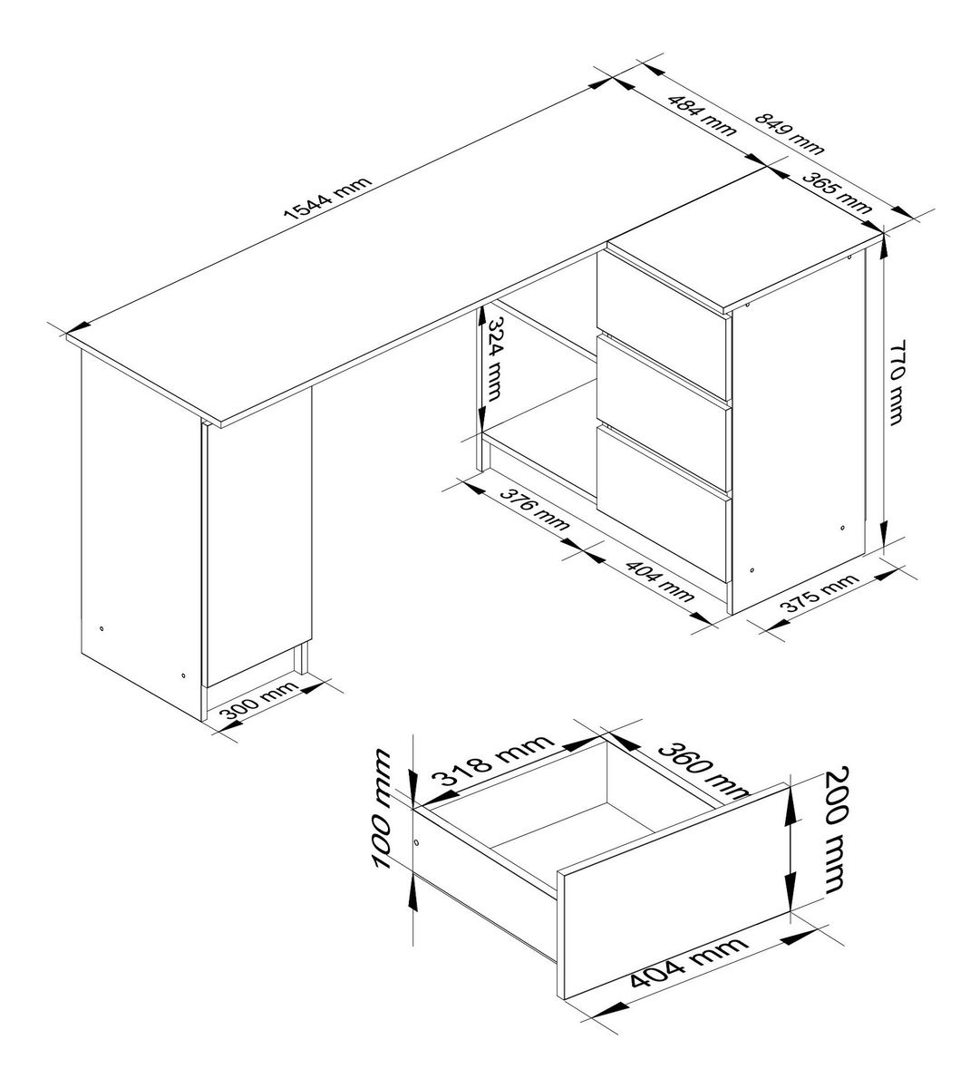 Kutni PC stolić Bevin (wenge) (D)