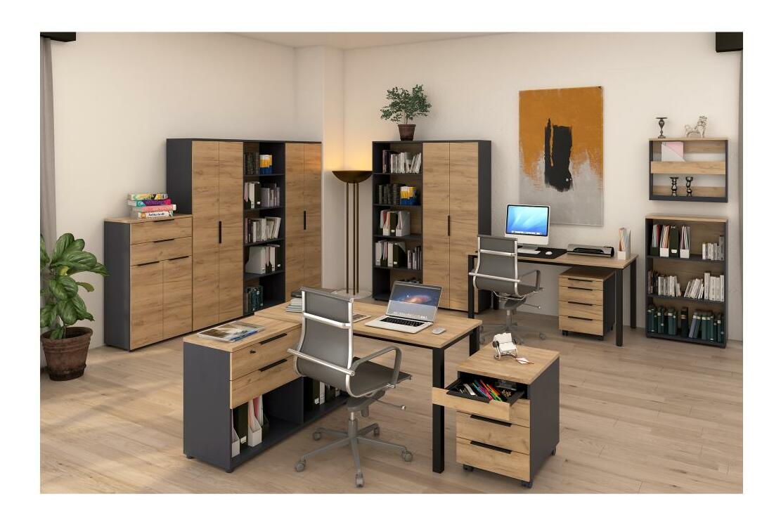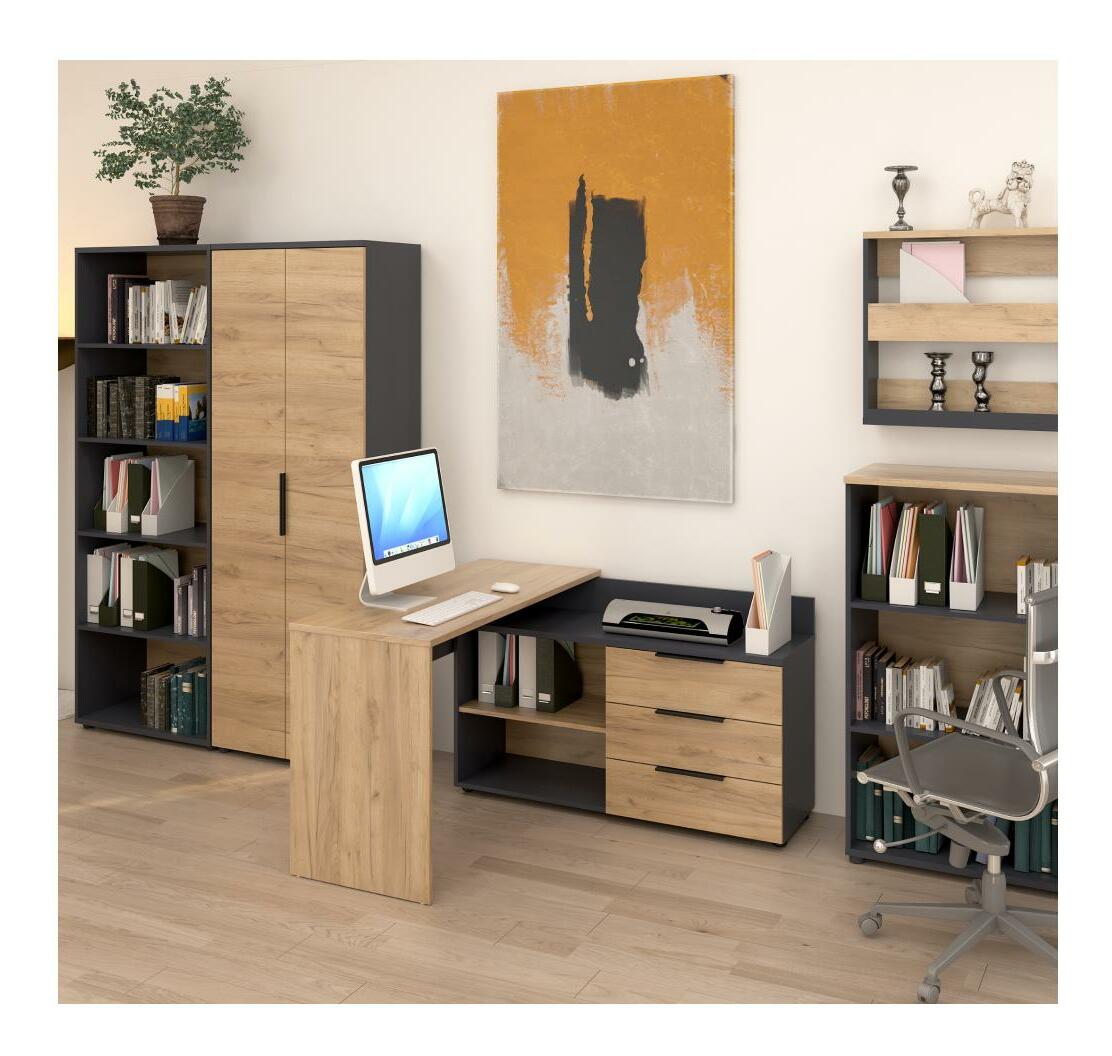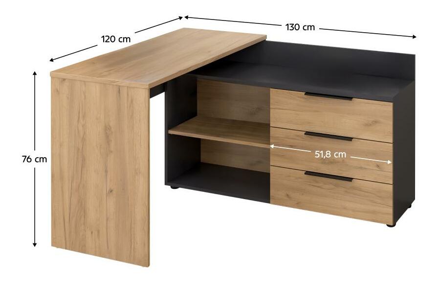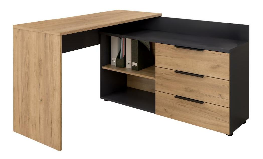 Kutni PC stolić Klodekas 9 (grafit + hrast artisan)