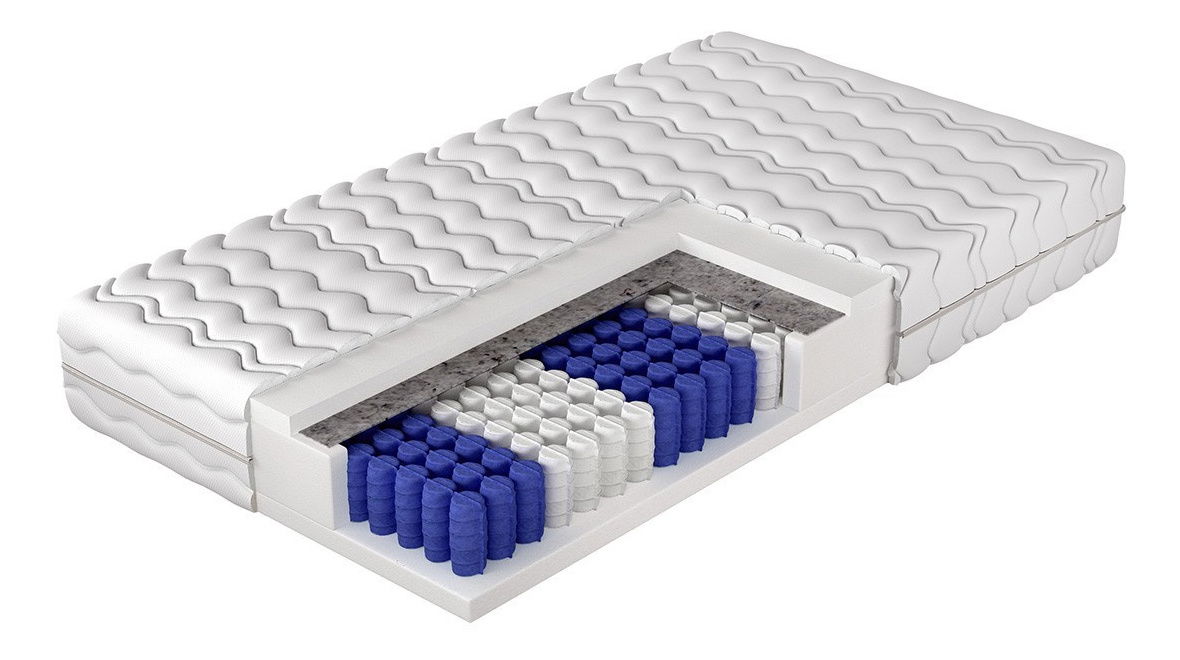 2 cm debela poliuretanska pjena (obostrano),jezgra – džepičasta opruga,periva navlaka LJETO/ZIMA,preporučuje se madrac okretati svaka 2–3 mjeseca,preporučuje se koristiti madrac na podnici od daske,7 zona,navlaka izrađena od 100% poliestera,ovdje je moguće odabrati dimenziju madraca.