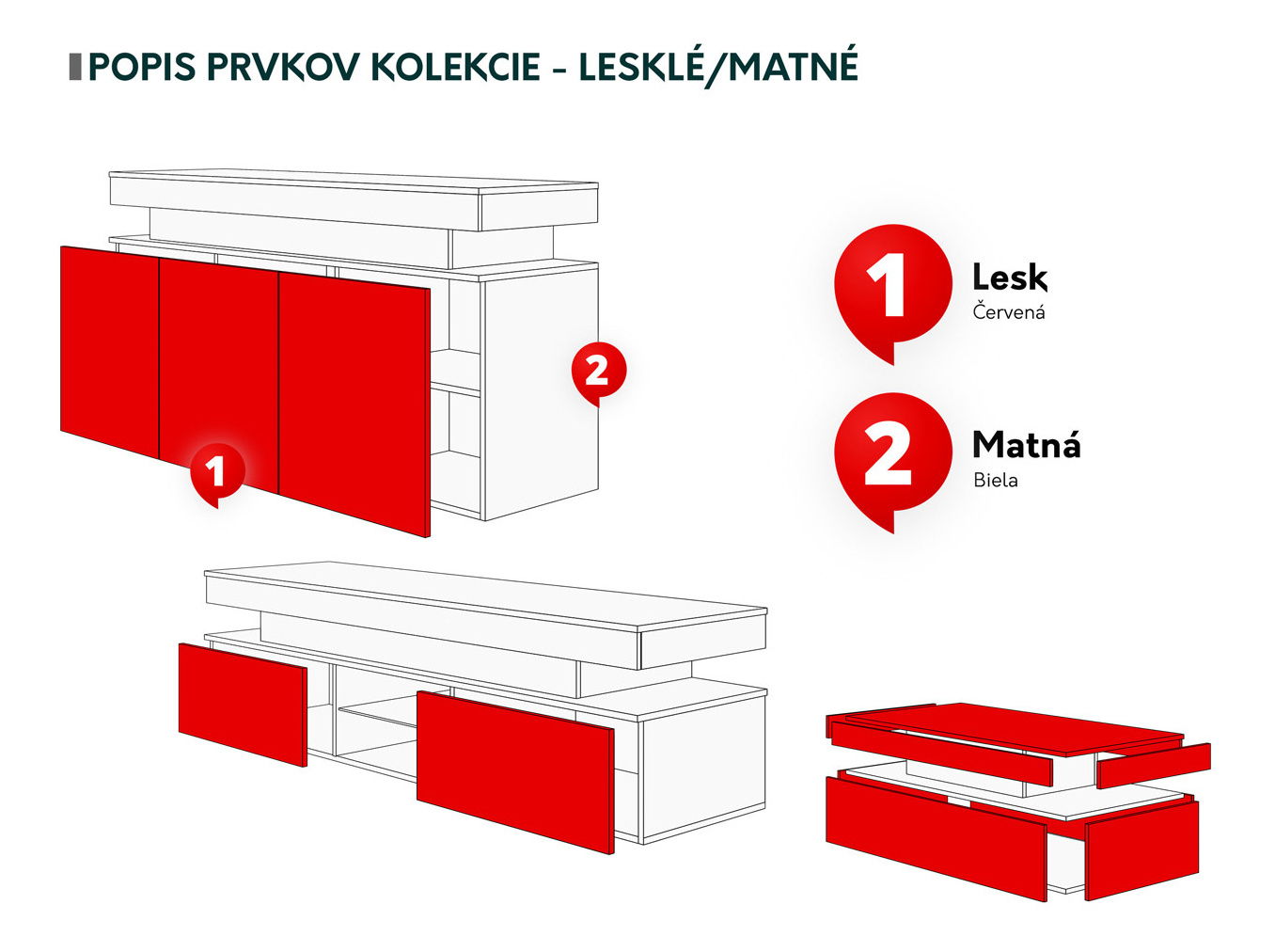 Namještaj za dnevni boravak Lesteralo II (bijela + bijela sjajna)