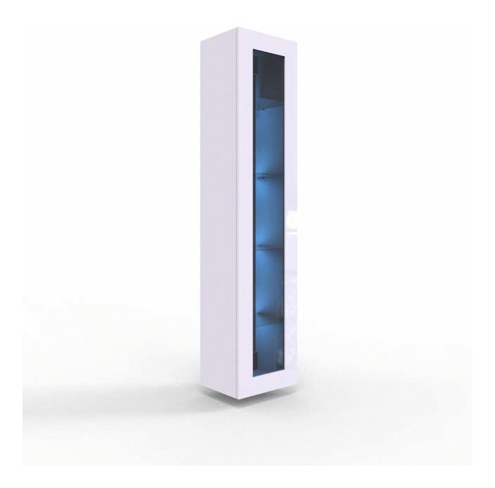 korpus - laminirani iverica u mat, vrata - MDF ploča u visokom sjaju, "PUSH TO OPEN" sistem otvaranja, u cijenu kompleta nije uključen stolić koji je prikazan na ilustrativnoj fotografiji, uz mogućnost dodatne narudžbe LED rasvjeta za vitrinu, mogućnost odabira boje, kaljeno staklo
