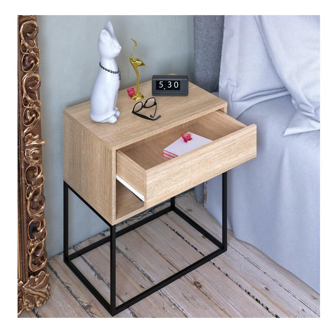 Noćni ormarić Autor (hrast sonoma + crna)