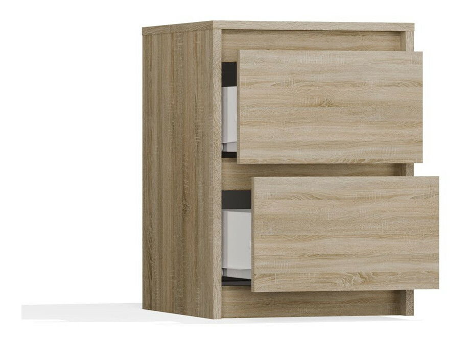 PrikazNoćni stolić Kentero 1 u elegantnoj boji hrasta sonoma idealan je dodatak svakoj spavaćoj sobi, gdje se susreću funkcionalnost i moderan dizajn. Njegova minimalistička konstrukcija i kvalitetna izrada od laminirane iverice osiguravaju dug vijek trajanja i jednostavno održavanje. Ladice na valjkastim vodilicama nude udobno i sigurno korištenje, a dovoljne dubine i širine pružaju prostor za sve potrebne sitnice poput naočala ili mobilnog telefona. Ovaj noćni stolić odličan je izbor za sve koji cijene spoj elegancije i praktičnosti.