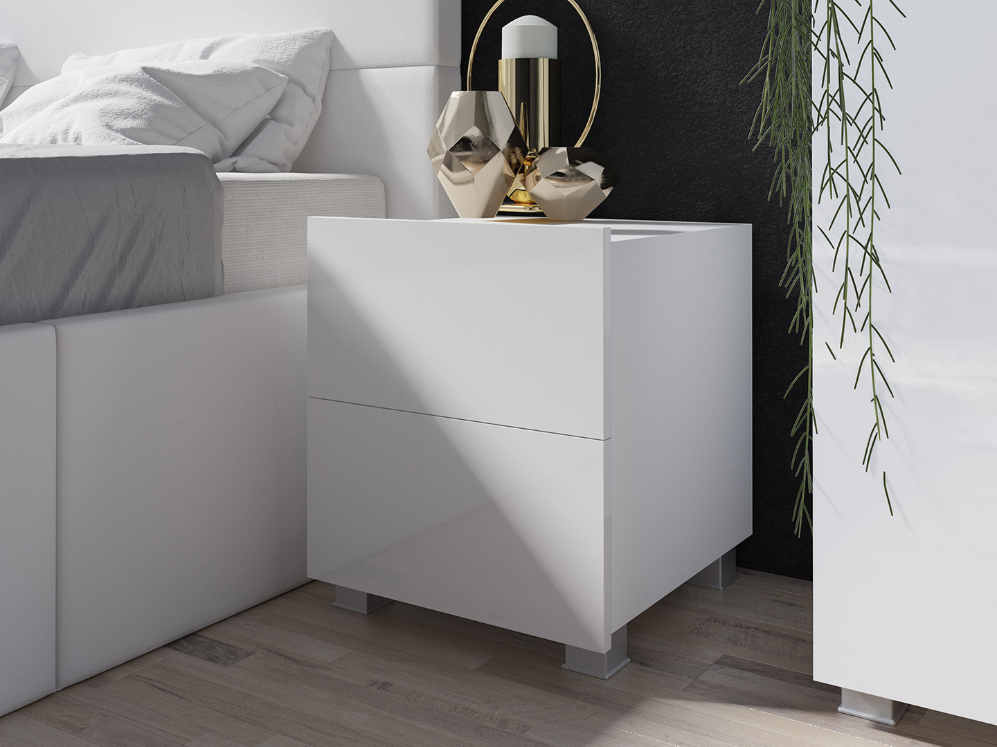 Noćni stolić Calabria (bijela mat + bijeli sjaj)