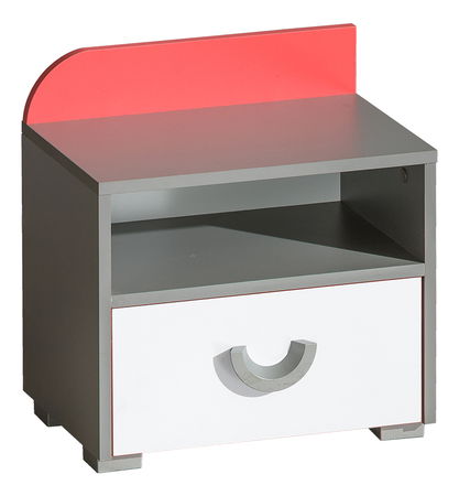 Praktičan noćni stolić za dječju sobu. Možete izabrati između tri boje - boja maline, zelena, tirkizna. Savršeno se uklapa uz krevet iz linije Flumo. Izrađen od laminirane ploče.