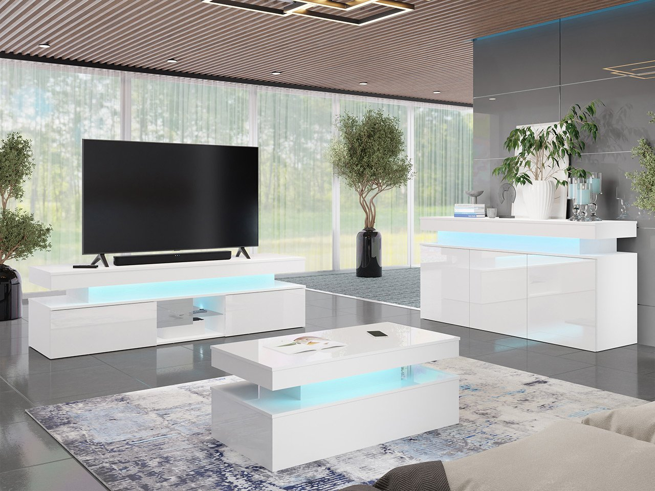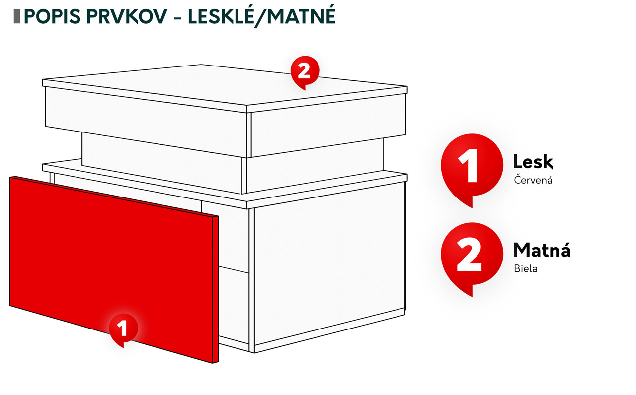 Noćni stolić Lesteralo 1S (crna + crni sjaj) (s plavom LED rasvjetom)