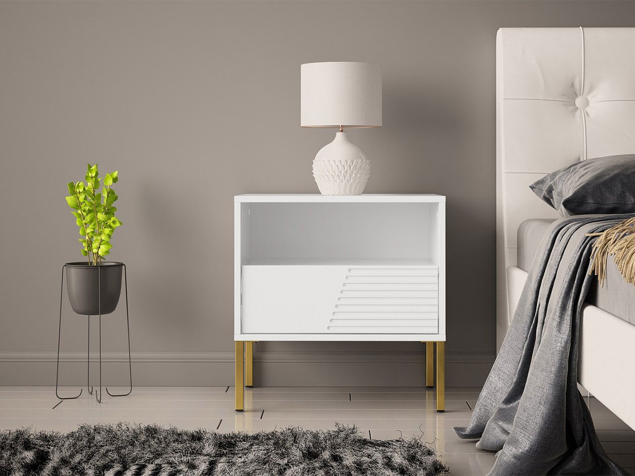 Noćni stolić Meretoza 02 (bijela + zlatna)