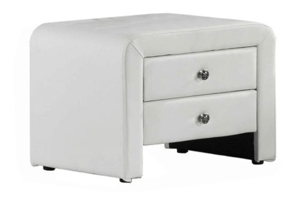 Moderan i jedinstven noćni stolić tapeciran eko-kožom. Ručke su metalne.