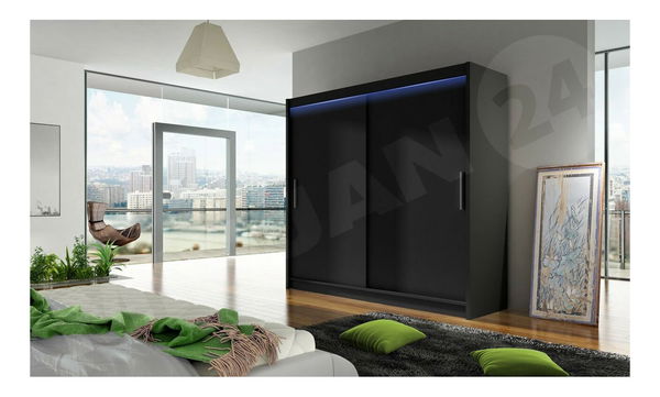 Ormar s kliznim vratima Lena I 180 (crni) (RGB LED rasvjeta u boji)