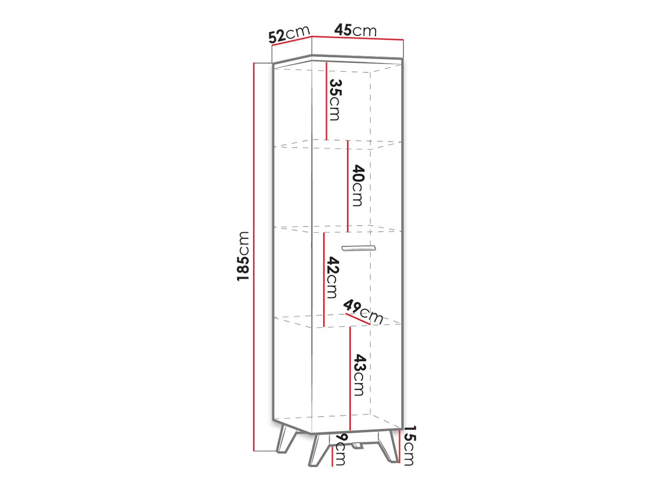 Ormar je idealan izbor za one koji traže udobnost i stil. Unesite u svoj interijer skandinavski dašak svježine. Ormar Kostello K2 u skandinavskom stilu prikladan je i za malu prostoriju u kojoj je teško smjestiti veliki ormar. Kontrastna boja u drvenom dekoru dat će vam osjećaj blizine prirodi, što Šveđani ili Norvežani cijene. Ormar ima police koje pomažu organizirati prostor, bilo za odjeću ili dodatke. Drvene nožice dodaju lakoću dizajnu i praktične su pri čišćenju jer omogućuju lakši pristup pri brisanju poda. Bijeli namještaj razvedrava prostor i optički ga povećava, stoga pogledajte kolekciju namještaja Kostello. Dimenzije: širina: 45 cm, visina: 185 cm, dubina: 52 cm. Boje: mogućnost odabira boja ovdje. Izvedba: laminirana iverica, PVC obrub, ručkice – drvene, noge – drvene. Jamstvo: 24 mjeseca.