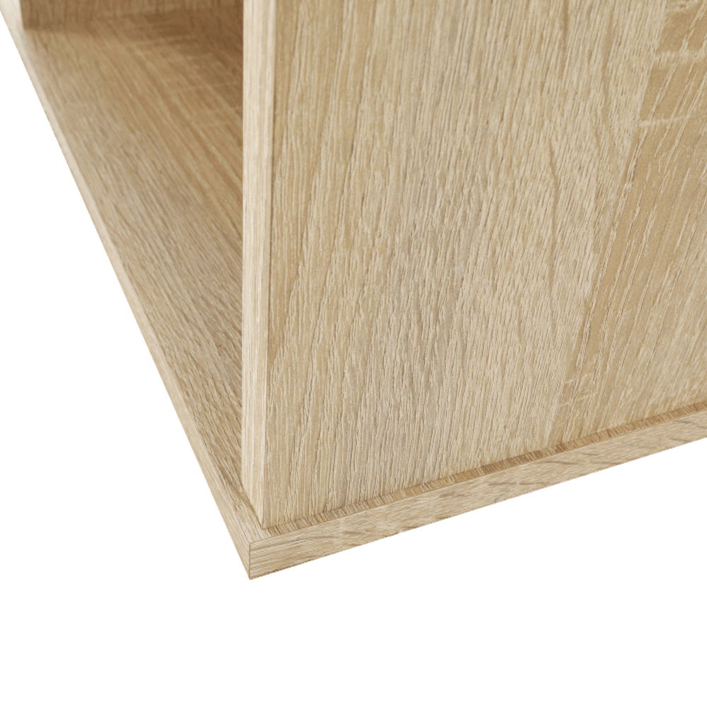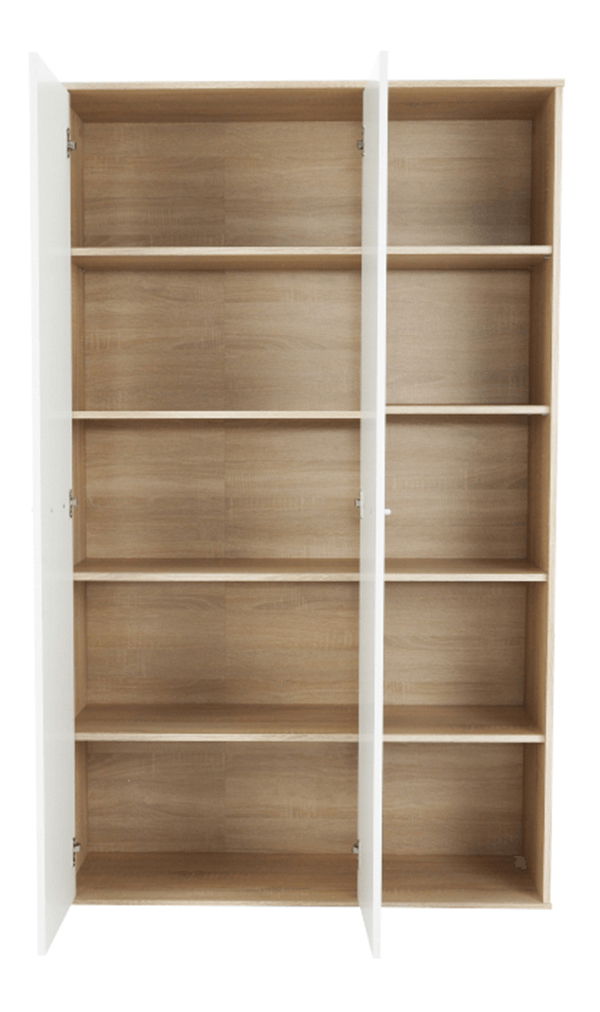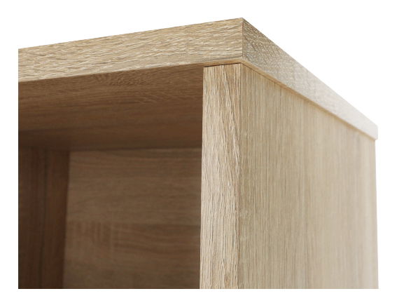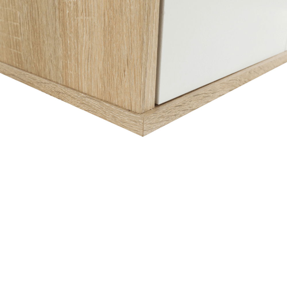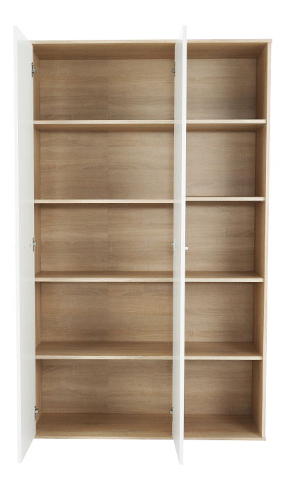 PrikazOrmar s regalom Marcelo MA52 visine 181,2 cm i dubine 33,5 cm u nijansi svijetlog hrasta sonoma i bijele boje fronti skriva tri odjeljka. Ormar ima dvoja vrata na lijevoj strani i regal s pet polica na desnoj. Iza vrata nalaze se police koje pružaju dovoljno prostora za pohranu. Materijal ormarića je laminirana iverica debljine 16 mm. Širina polica iza vrata je 68,7 cm, širina dijela s policama je 36,8 cm, a širina vrata 33,9 cm. Ormar se isporučuje rastavljen. Ovaj proizvod izvrstan je način da vaše stvari ostanu uredno posložene i pohranjene na jednom mjestu.