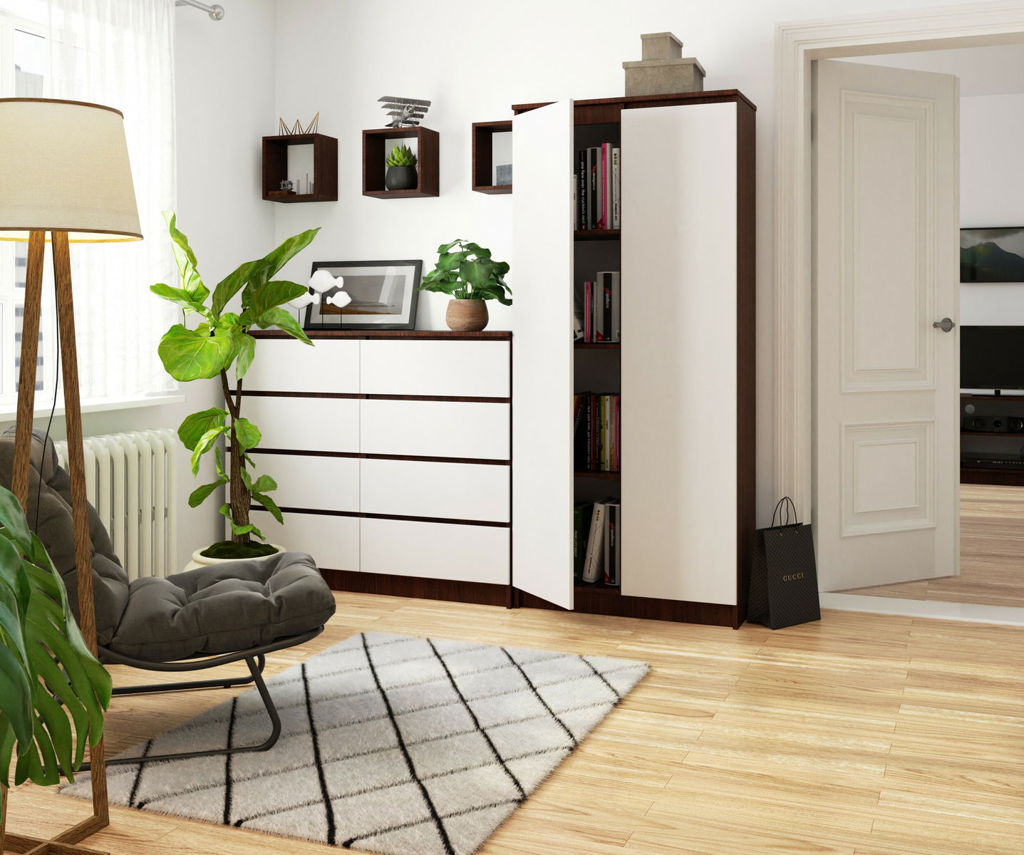 Ormar s policama Rainer II (wenge + bijela)