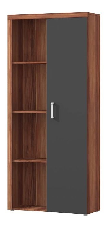 Moderan ormar s policama u kombinaciji šljive i grafita.