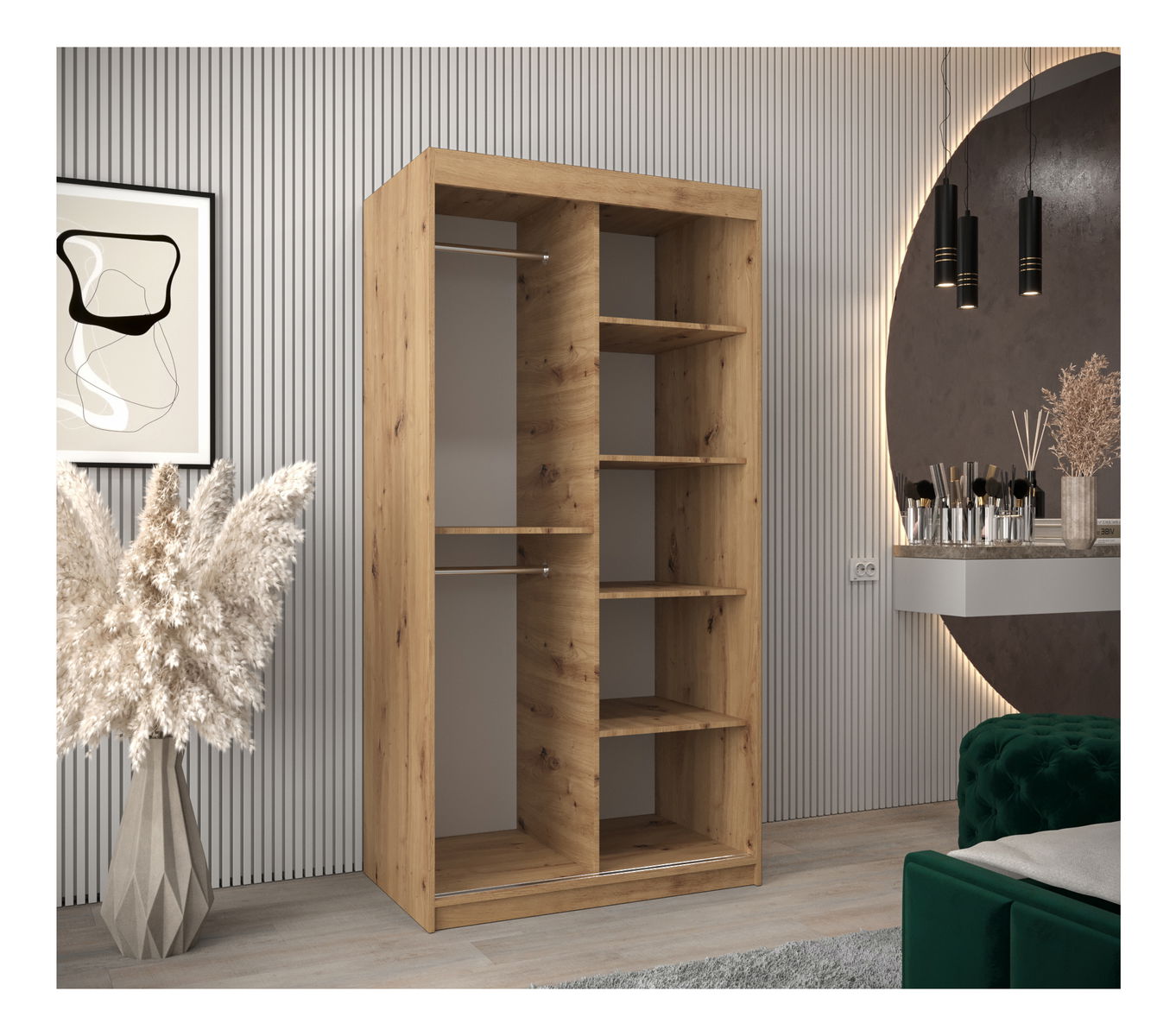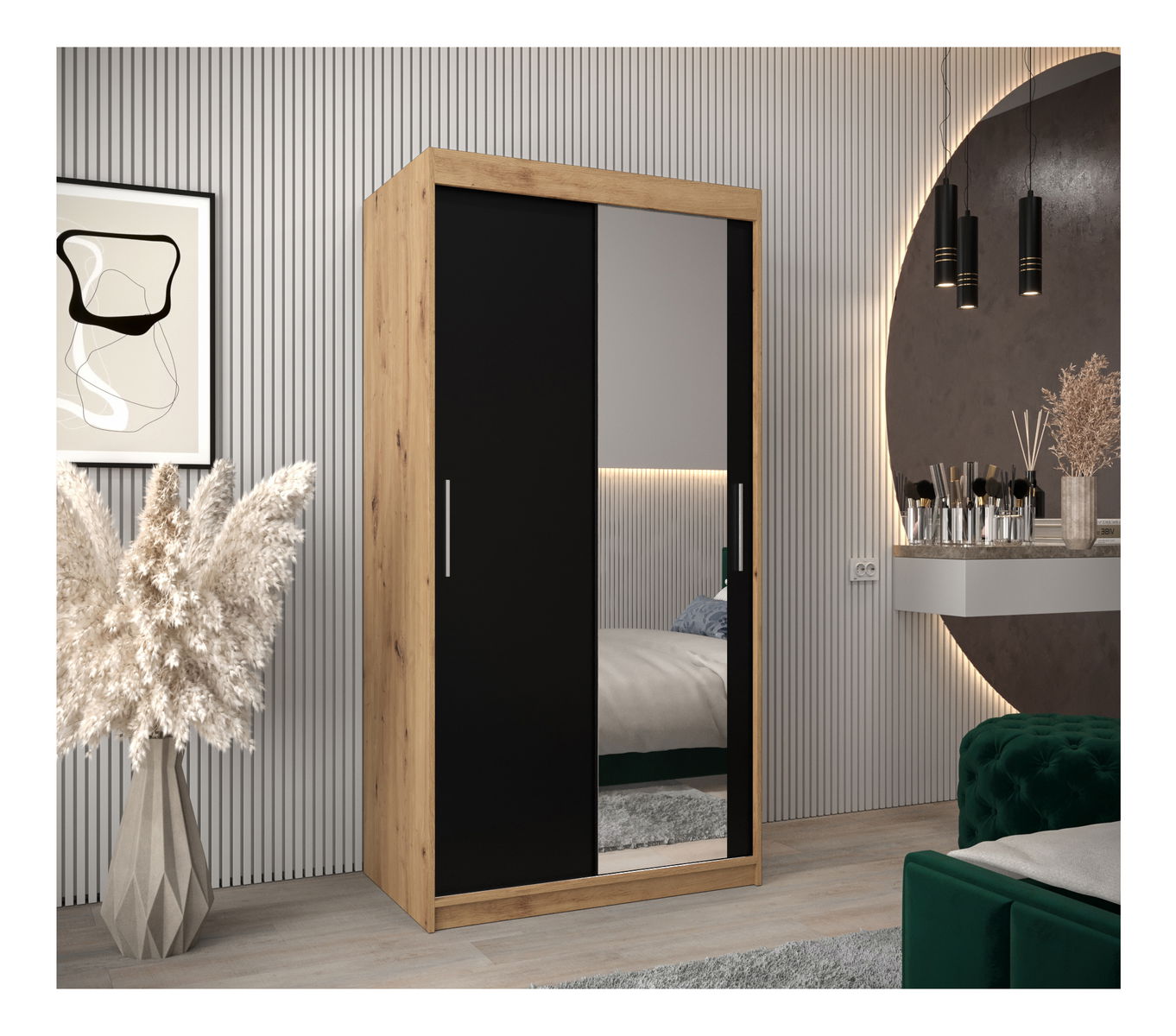 Ormar za garderobu 100 cm Toki 2 (hrast artisan + crna mat)