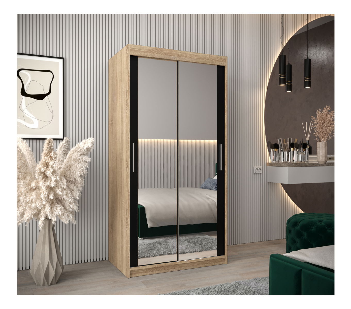 Ormar za garderobu 100 cm Toki 3 (hrast sonoma + crna mat)