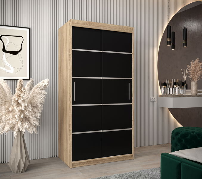Ormar za garderobu 100 cm Verika 1 100 (hrast sonoma + crna)