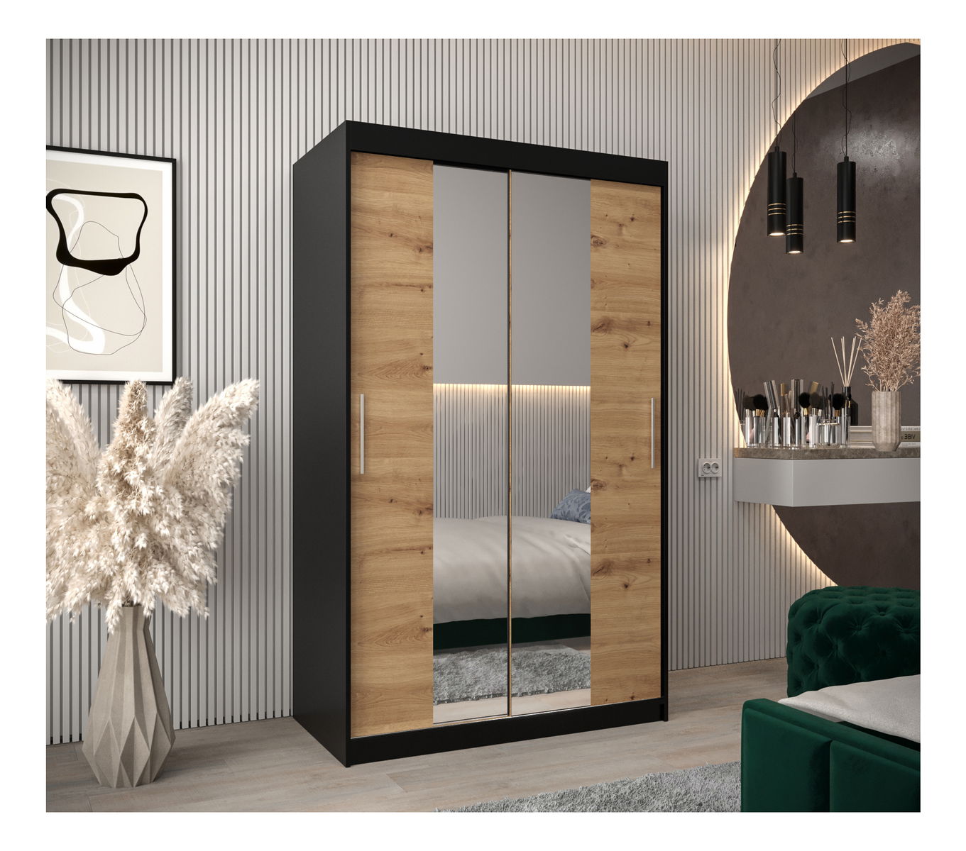 Ormar za garderobu 120 cm Toki 1 (crna mat + hrast artisan)