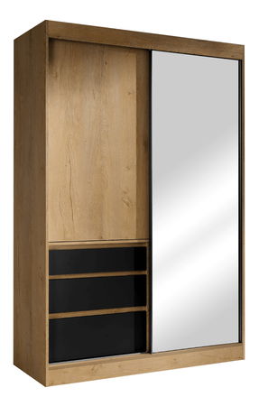 Ormar za garderobu 140 s ogledalom Romunald (hrast lefkas + crna)