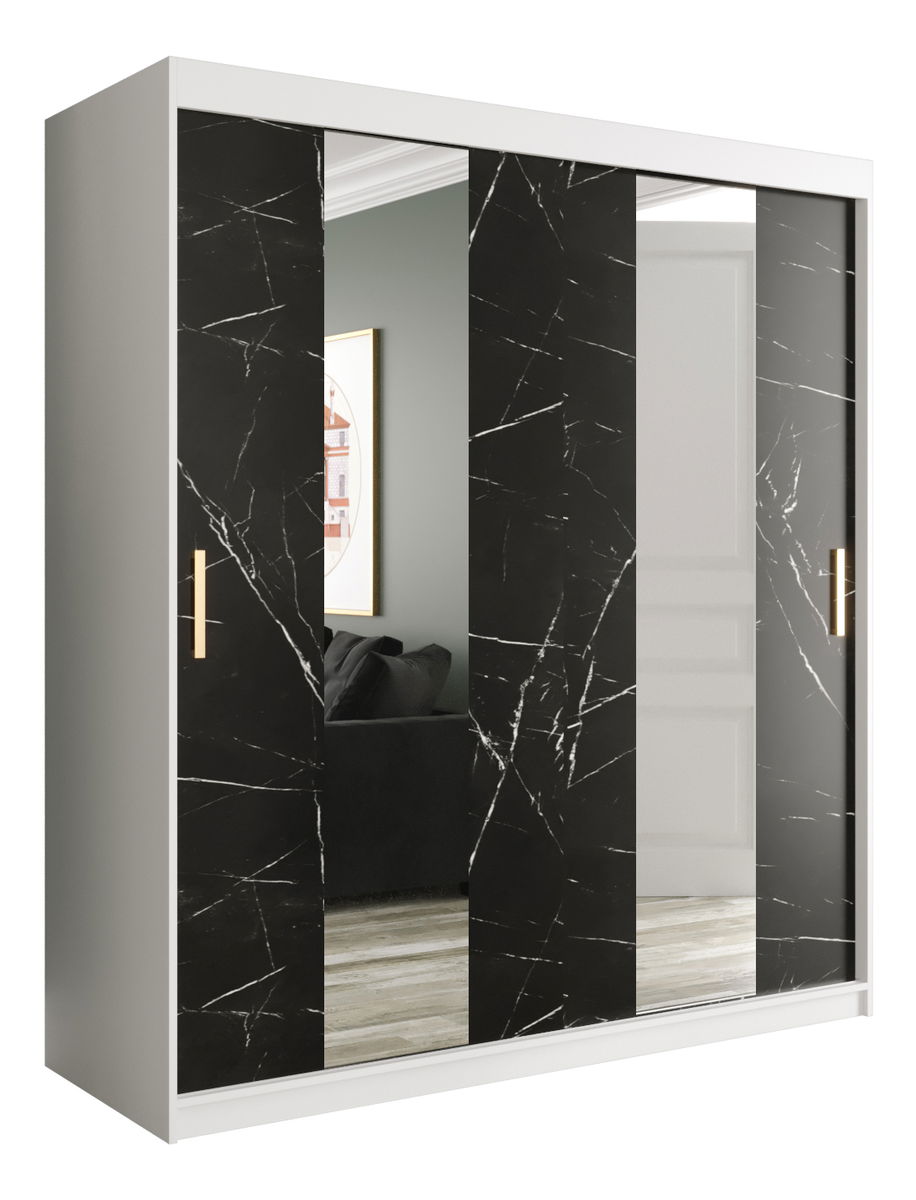 Ormar za garderobu 180 cm Marbelo P (bijela mat + crni mramor)