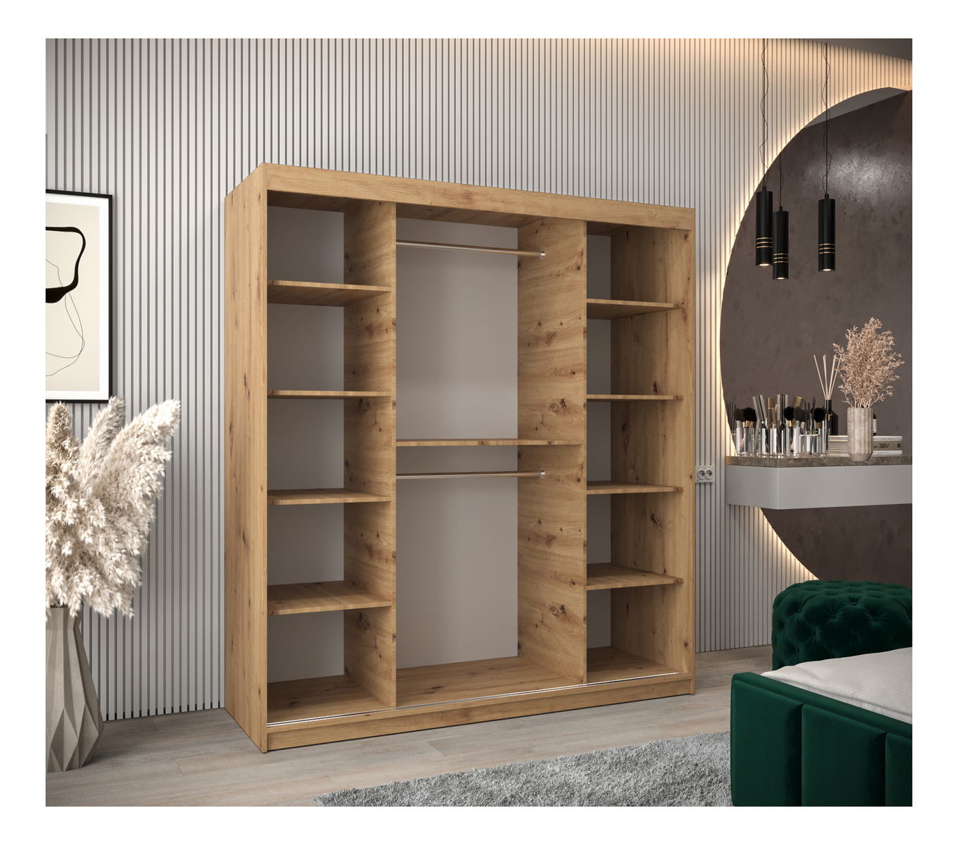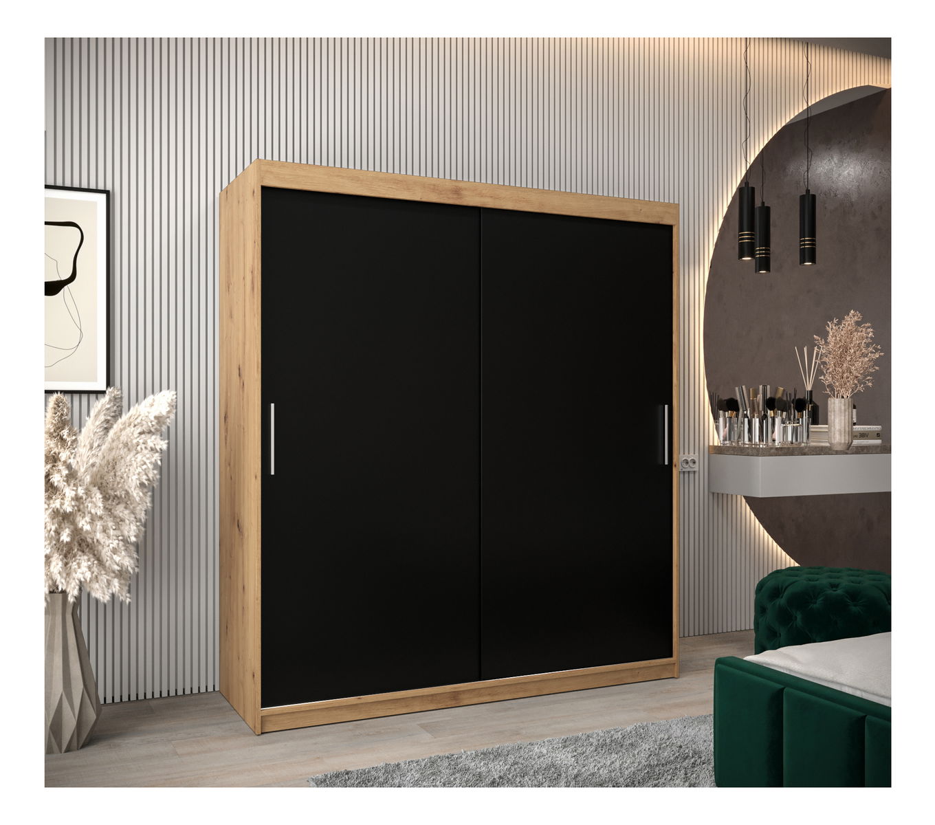 Ormar za garderobu 180 cm Toki (hrast artisan + crna mat)